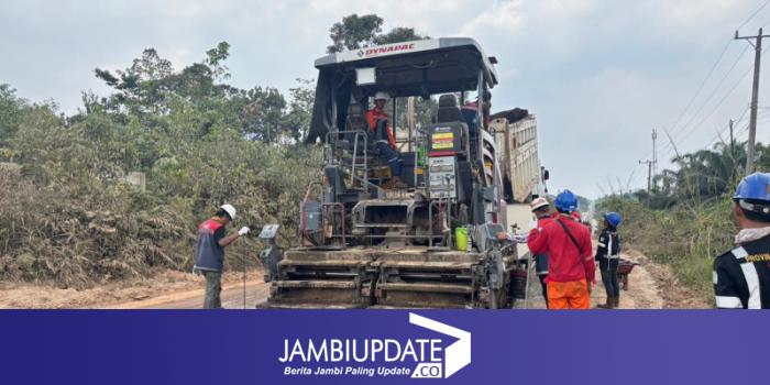 JAMBIUPDATE.CO, JAMBI - Jalan Ness dari ruas Simpang Sungai Duren-Ness sepanjang 4,9 Kilometer yang sempat rusak terdampak pengangkutan material jalan tol akhirnya mulus kembali. Pihak Hutama Karya mengaspal kembali jalan, sehingga jalan mulus berwarna hitam khas aspal baru siap lamgsung digunakan masyarakat.