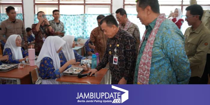 JAMBIUPDATE.CO, JAMBI - Gubernur Jambi Dr. H. Al Haris, S.Sos, MH mendampingi Wakil Menteri (Wamen) Pendayagunaan Aparatur Negara dan Reformasi Birokrasi (PAN-RB) RI Komjen Pol (Purn) Purwadi Arianto, M.Si melakukan peninjauan pelaksanaan Program Makan Bergizi Gratis (MBG), untuk memastikan pelaksanaan program MBG berjalan dengan baik, di SMAN 10 Kota Jambi, Jalan Depati Parbo, Pematang Sulur, Kecamatan Telanaipura, Kota Jambi, Kamis (18/09/2025) siang.