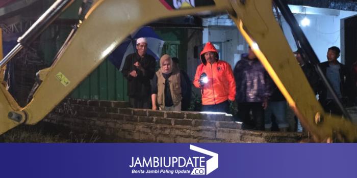 Bupati Kerinci, Monadi, bersama Kepala Dinas PUPR, Maya Novefry Handayani, terlihat turun ke lokasi sejak siang hingga malam untuk memastikan penanganan berjalan lancar. Keduanya mengawasi langsung proses pengerukan material yang menutup aliran air.