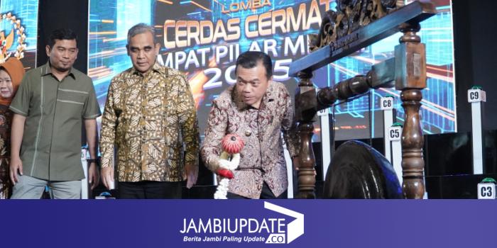 JAMBIUPDATE.CO, JAMBI - Gubernur Jambi Dr. H. Al Haris, S.Sos, MH mengemukakan, kegiatan lomba cerdas cermat yang diselenggarakan memiliki makna strategis. Pertama, menjadi media edukasi yang efektif untuk menanamkan nilai-nilai kebangsaan kepada generasi muda. Kedua, menumbuhkan rasa bangga terhadap jati diri bangsa Indonesia. Ketiga, melatih kemampuan berpikir kritis, kerja sama, serta sportivitas dalam berkompetisi.