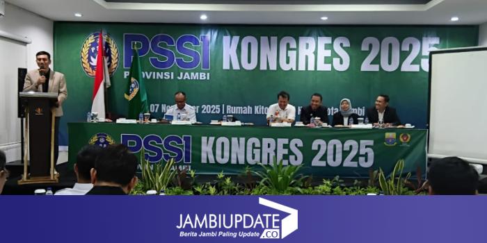 JAMBIUPDATE.CO, JAMBI- Kongres Persatuan Sepakbola Seluruh Indonenesia (PSSI) Provinsi Jambi tahun 2025 resmi dibuka di hotel Rumah Kito, Jumat sore (7/11) kemarin. Pembukaan Kongres dihadiri langsung oleh Ketua PSSI Provinsi Jambi Muhammad Fadhil Arief, Ketua KONI Provinsi Jambi Mat Sanusi, Kepala Dinas Pemuda dan Olagraga (Kadispora) Provinsi Jambi Novriadi.