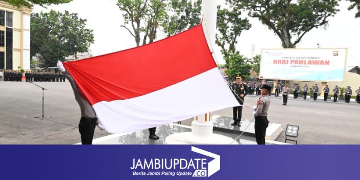 JAMBIUPDATE.CO, JAMBI - Kepolisian Daerah Jambi menggelar Upacara Peringatan Hari Pahlawan Tahun 2025 di Lapangan Hitam Mapolda Jambi, Senin (10/11/2025).