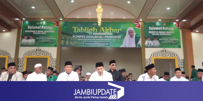 JAMBIUPDATE.CO, JAMBI – Danrem 042/Gapu Brigjen TNI Heri Purwanto, S.E., M.Sc. menghadiri Tabligh Akbar bersama Maulana Al Habib Muhammad Luthfi bin Yahya yang digelar di Pondok Pesantren Sholeh Al Mubarok, Desa Gemuruh, Kecamatan Tungkal Ulu, Kabupaten Tanjung Jabung Barat, Provinsi Jambi, Minggu (22/11/2025). Kegiatan yang dihadiri Forkopimda Provinsi dan Kabupaten Tanjab Barat, para alim ulama, tokoh masyarakat, serta ribuan jamaah ini berlangsung khidmat dan penuh antusiasme.