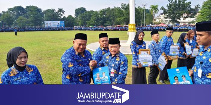 JAMBIUPDATE.CO, JAMBI - Gubernur Jambi Al Haris menyerahkan Surat Keputusan (SK) Pengangkatan 6.438 Pegawai Pemerintah dengan Perjanjian Kerja (PPPK) Pemprov Jambi di lapangan kantor Gubernur Jambi, Senin (1/12/2025). Dengan pengangkatan itu, masih tersisa 2 ribuan honorer yang belum mendapatkan status PPPK Paruh Waktu karena tak memenuhi syarat.