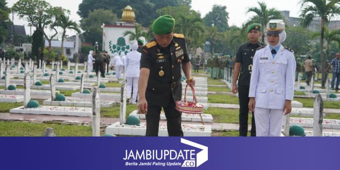 JAMBIUPDATE.CO, JAMBI - Korem 042/Gapu menggelar kegiatan Ziarah Rombongan dalam rangka memperingati Hari Juang TNI AD Ke-80 Tahun 2025 di Taman Makam Pahlawan (TMP) Satria Bhakti Kota Jambi, Rabu pagi (11/12/2025). Kegiatan ini dipimpin langsung Danrem 042/Gapu Brigjen TNI Heri Purwanto S.E., M.Sc, diikuti para pejabat Korem, prajurit, PNS dan Persit.