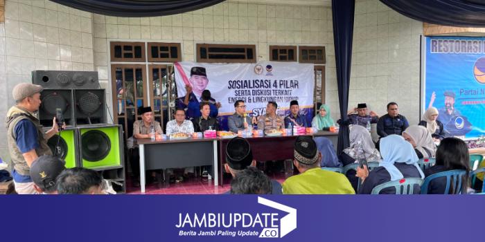 Sosialisasi 4 pilar ini juga dibarengi dengan diskusi terkait beberapa hal, termasuk soal energi dan lingkungan hidup, Senin 15 Desember 2025 di kantor DPD NasDem Muaro Jambi di Sengeti.