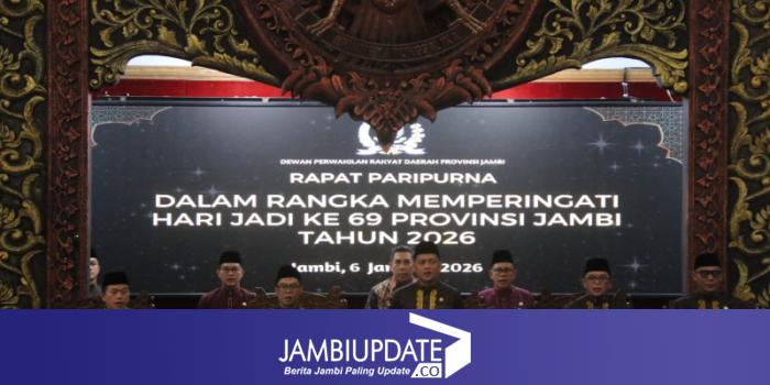 JAMBIUPDATE.CO, JAMBI - Gubernur Jambi Dr. H. Al Haris, S.Sos, MH mepaparkan keberhasilan program pembangunan daerah juga Pemerintah Provinsi Jambi terus mendukung dan mendorong maksimal program-program Pemerintah pusat sebagai wujud sinergi Pusat dan Daerah, juga untuk mendorong peningkatan perekonomian daerah. Hal tersebut dipaparkannya saat menghadiri Rapat Paripurna DPRD Provinsi Jambi dalam rangka Memperingati Hari Jadi Ke-69 Provinsi Jambi Tahun 2026, bertempat di Ruang Rapat Utama, Gedung DPRD Provinsi Jambi, Selasa (06/01/2026) pagi.