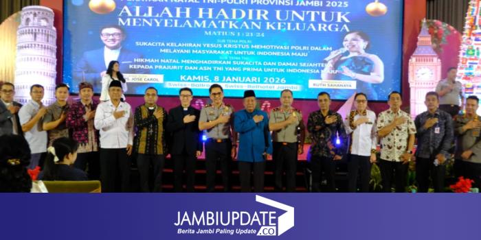 JAMBIUPDATE.CO, JAMBI - Wakil Gubernur Jambi Drs. H. Abdullah Sani, M. Pd.I menyampaikan bahwa Natal mengajarkan kepada makna kasih yang tulus, pengabdian tanpa pamrih, serta pengorbanan demi kebaikan bersama. Hal tersebut disampaikannya pada Perayaan Natal bersama TNI/Polri, bertempat di Swiss Bell hotel, Kamis (8/1/2026) malam.
