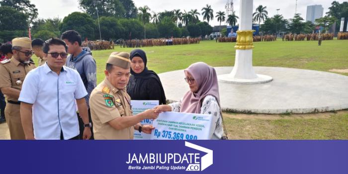 JAMBIUPDATE.CO, JAMBI - Pemerintah Provinsi Jambi menggelar Upacara Peringatan Bulan Keselamatan dan Kesehatan Kerja (K3) yang dirangkaikan dengan Apel Kesadaran Nasional Aparatur Sipil Negara (ASN) di lapangan depan Kantor Gubernur Jambi, Senin (19/01/2026).