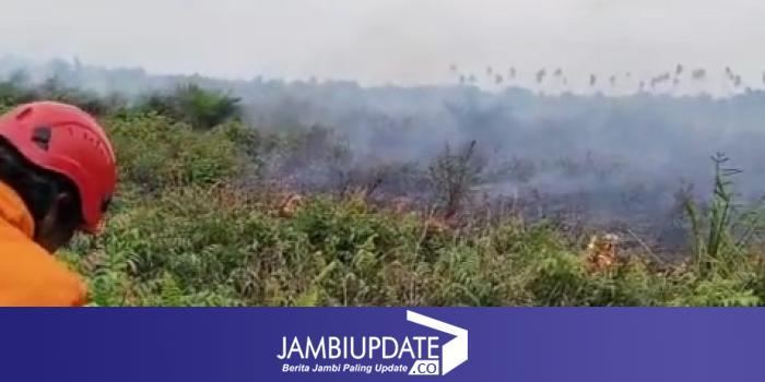 iklan Lahan di Desa Lagan Tengah, Kecamatan Geragai terbakar, terlihat petugas sedang melakukan pemadaman