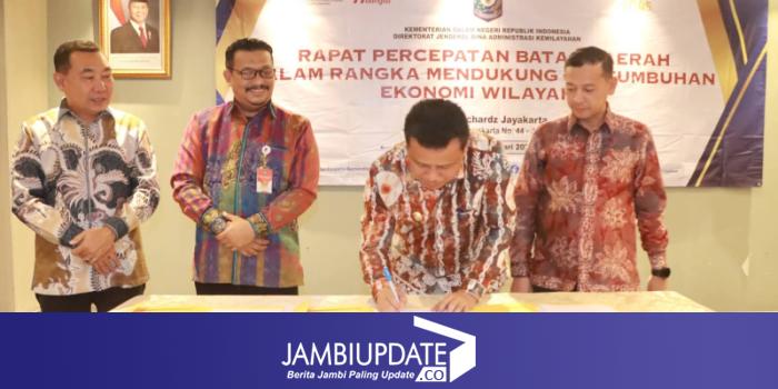 JAMBIUPDATE.CO, JAKARTA – Rapat percepatan penegasan batas daerah antara Kabupaten Tanjung Jabung Barat (Tanjab Barat) dan Kabupaten Tanjung Jabung Timur (Tanjab Timur) menghasilkan kesepakatan untuk menyerahkan penyelesaian sengketa batas wilayah kepada Tim Penegasan Batas Daerah (TPBD) Pusat.