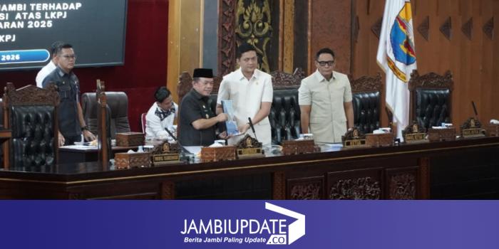 JAMBIUPDATE.CO, JAMBI - Gubernur Jambi Dr. H. Al Haris, S.Sos.,MH., menyampaikan jawaban resmi Pemerintah Provinsi Jambi atas Pandangan Umum Fraksi-Fraksi DPRD Provinsi Jambi terhadap Laporan Keterangan Pertanggungjawaban (LKPJ) Tahun Anggaran 2025 dalam Rapat Paripurna DPRD Provinsi Jambi, bertempat di Gedung DPRD Provinsi Jambi, Rabu (08/04/2026).