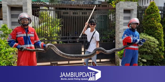 JAMBIUPDATE.CO, JAMBI – Warga Jalan Sersan Muslim, Kelurahan Paal Merah, Kecamatan Paal Merah, dibuat geger dengan kemunculan seekor ular sanca berukuran besar, Jumat (10/4/2026). Ular sepanjang sekitar 4 meter dengan berat mencapai 25 kilogram itu ditemukan di area permukiman dan berpotensi membahayakan warga.