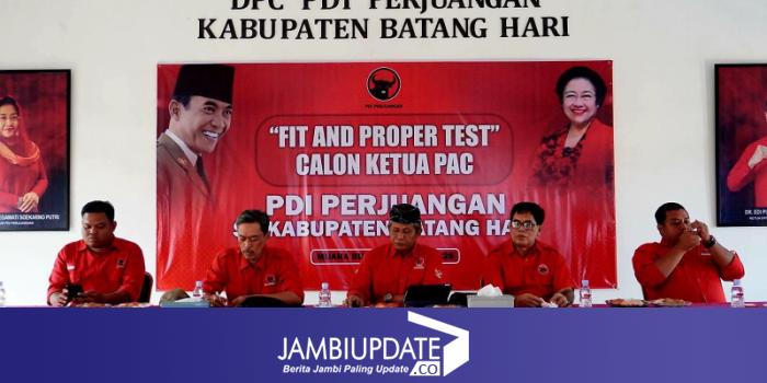 JAMBIUPDATE.CO, BATANG HARI - Dewan Pimpinan Daerah (DPD) PDI Perjuangan Provinsi Jambi menggelar Fit And Proper Test bagi calon ketua PAC PDI Perjuangan Se - Kabupaten Batang Hari.
