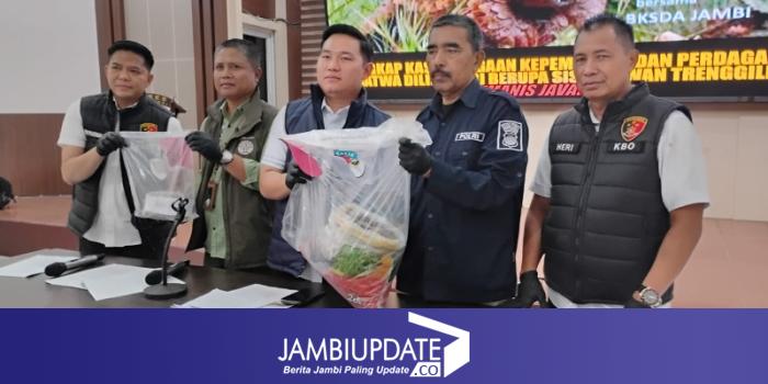 JAMBIUPDATE.CO, MUARO JAMBI – Upaya perdagangan ilegal satwa dilindungi kembali digagalkan aparat. Satreskrim Polres Muaro Jambi bersama Balai Konservasi Sumber Daya Alam (BKSDA) Provinsi Jambi menangkap dua pelaku yang hendak menjual sisik trenggiling (Manis javanica) di Kecamatan Bahar Selatan, Selasa (7/4/2026) sore.