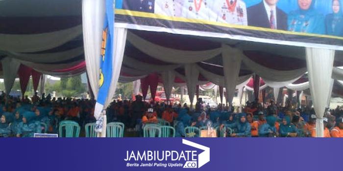 JAMBIUPDATE.COM, MUARABULIAN - Gubernur Jambi, Hasan Basri Agus berang ketika melihat kursi tamu yang berada tepat didepannya yang merupakan kursi tamu perwakilan dari tiap daerah terlihat banyak yang kosong sebelum acara selesai. "Kursi yang kosong itu kabupaten mana, tolong dicatat," Ujarnya saat masih memberikan kata sambutan dalam acara puncak BBGRM XI dan HKG-PKK ke 42.