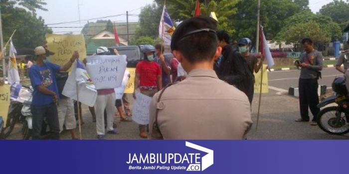 Para pendemo tidak berhasil masuk ke dalam kantor walikota Jambi. Mereka tertahan di gerbang pagar masu ke kantor walikota.