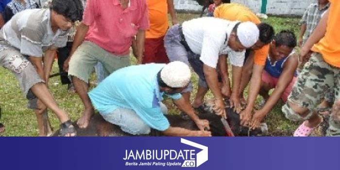 JAMBIUPDATE.COM, JAMBI-Minggu, 5 Oktober 2014, bertepatan dengan perayaan hari Idul Adha 1435 H, Polisi Daerah Jambi, sembelih 26 hewan qurban yang akan dibagi-bagikan kepada warga sekitar Polda Jambi.