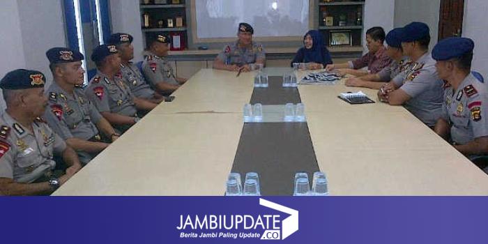 JAMBIUPDATE.COM, JAMBI-Korp Brimobda Jambi di bawah pimpinan Dansat Brimobda Jambi Kombes Suhendri pagi ini berkunjung ke Graha Pena Jambiekspres pagi ini sekitar pukul 10.00 Wib (30/10). Di Jambi Ekspres, korp Brimobda Jambi diterima oleh Wakil General Manager Jambi Ekspres Eka Wahyu, Pemimpin Redaksi M Haramen, General Manager jambiupdate.com Pirma Satria beserta kru redaksi Jambi Eksperes lainnya.
