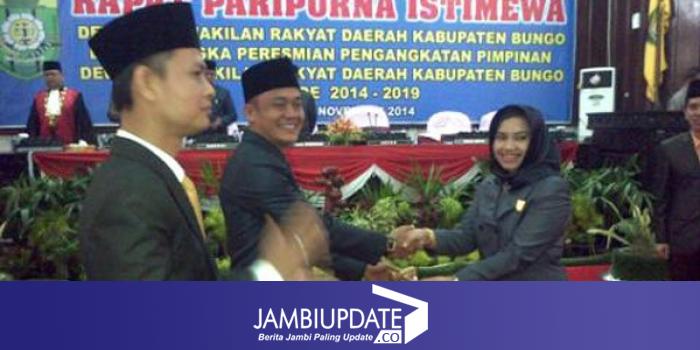 JAMBIUPDATE.COM, MUARABUNGO - Hari ini (6/11) unsur pimpinan DPRD Bungo dilantik.  Mereka adalah Ria Mayang Sari sebagai ketua, Syarkoni Syam dan Ahmad Fauzan sebagai wakil ketua DPRD Bungo. Pelantikan digelar dalam  rapat paripurna di gedung  DPRD Bungo.