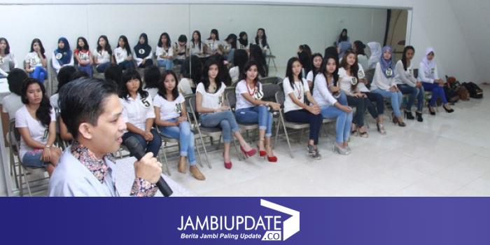 iklan Pemred Jambi Ekspres M Haramen memberi pembekalan soal jurnalistik kepada peserta audisi Miss Fiori Jumat (07/11)