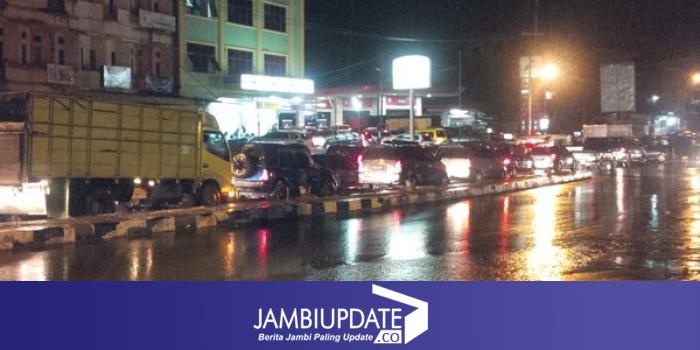 JAMBIUPDATE.COM, JAMBI - SPBU Nusa Indah yang masih buka sekitar pukul 22.00 Wib  langsung diserbu warga jambi yang sebagian besar menggunakan kenderaan roda empat.