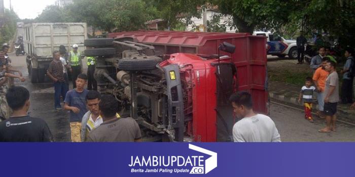 JAMBIUPDATE.COM, MUARABULIAN - Truck batubara yang tanpa muatan dari arah Jambi hendak ke Sarolangun terbalik, tepatnya di Kelurahan Rengas Condong, Kecamatan Muarabulian.