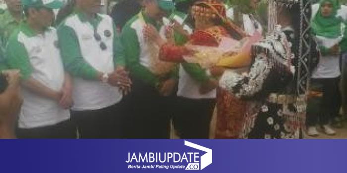 Bupati Kerinci Adi Rozal disambut tari-tarian di Ujung Pasir