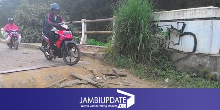JAMBIUPDATE.COM, MUARASABAK - Bagi masyarakat yang akan melewati jembatan Zone V.2 sesudah gapura perbatasan Tanjabtim-Muaro Jambi harus ekstra hati-hati. Pasalnya bila pengendara roda empat asal lewat, bisa dipastikan bagian bawah kendaraan bakal nyangkut.