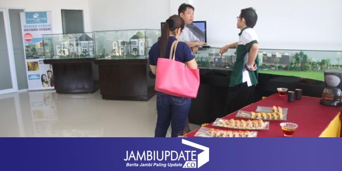 Pengunjung saat melihat miniature perumahan CitraLand NGK yang tersedia di Marketing Galery