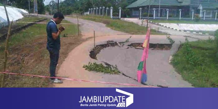 JAMBIUPDATE.COM, SAROLANGUN - Amblasnya jalan sepanjang 3 meter di depan Kantor Kejari Sarolangun, akibat hujan lebat mengguyur Kota Sarolangun, langsung diperbaiki Dinas PU Sarolangun.