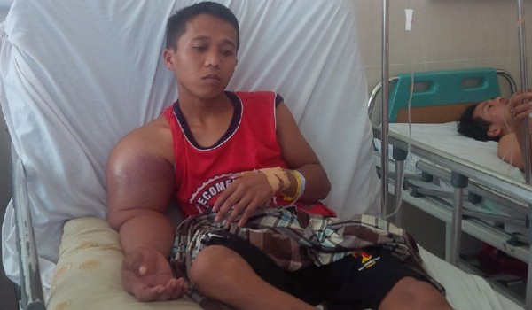 Kondisi ayah dua anak ini semakin mengkhawatirkan. Dia terus berjuang melawan penyakit ganas yang tumbuh di lengan kanan bagian atas yang saat ini sudah membengkak hampir sebesar paha orang dewasa.