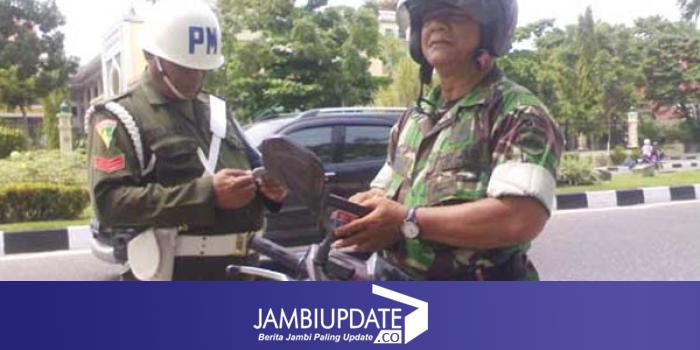 JAMBIUPDATE.COM, JAMBI - Untuk menertibkan anggota TNI di Wilayah Jambi, Rabu (4/3) Dendom Jambi gelar razia. Satu anggota ditilang tartib. Razia ini digelar di Jalan Husni Tamrin, Simpang Makalam Jambi.