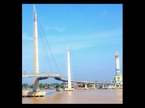 "Ini jembatan pertama di Indonesia," jelasnya. Panjang jembatan 503 meter dengan lebar 4,5 meter. Pondasi dibuat tiang pancang beton. Secera keseluruhan kabel penggantung menggunakan Spiral Strand yang diimpor khusus dari Italia.