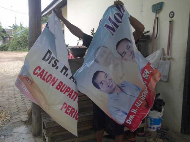 Pantauan jambiupdate di lapangan Jumat (24/4), dimana terlihat baleho dan spanduk Ali Redo dan Fahrizal yang sudah menyatakan sikap berpasangan untuk maju bertarung di Pilkada Batanghari Desember 2015 mendatang, telah bolong dan ada juga yang telah dirobek dan dipotong dua.