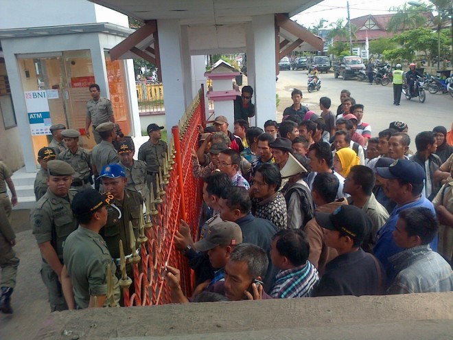 JAMBIUPDATE.COM, KUALATUNGKAL - selasa (28/4) pagi, pukul 09.00 WIB warga 12 desa di tiga kecamatan wilayah hulu gerudug kantor bupati tanjung jabung barat. Mereka datang ke kantor bupati menyuarakan aspirasinya setelah sebelumnya mereka menyerbu kantor DPRD pada Senin (27/4) kemarin.