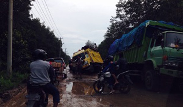 "Sudah beberapa kali truk sawit jatuh dilokasi jalan rusak ini," terangnya.