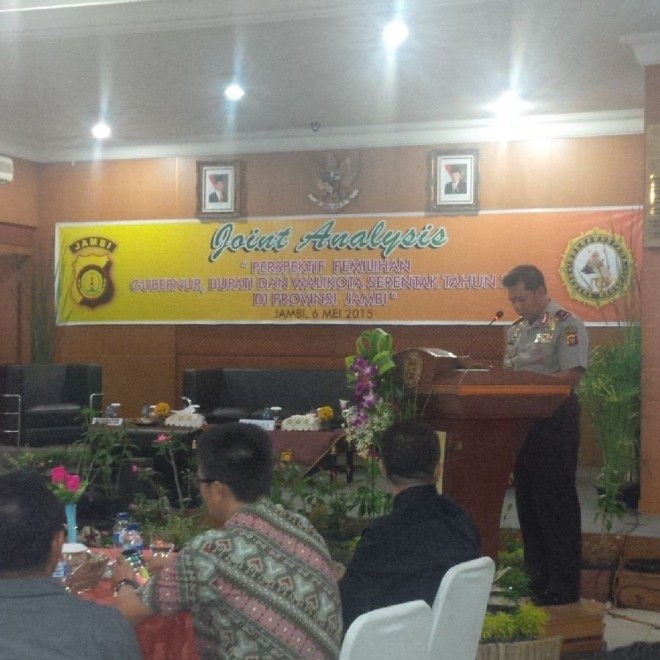 JAMBIUPDATE.COM, JAMBI - Polda Jambi melalui Direktorat Intelkam, Rabu (6/5) gelar diskusi terkait Pemilihan Gubernur, Bupati dan Walikota Tahun 2015 di Provinsi Jambi. Acara berlangsung di Gedung Siginjai Mapolda Jambi.