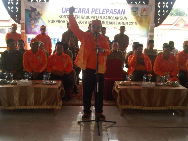 "Saya minta kepada semua atlit untuk semangat, semoga bisa mengharumkan nama Kabupaten Sarolangun pada Porprov Jambi di Batanghari," tandasnya.