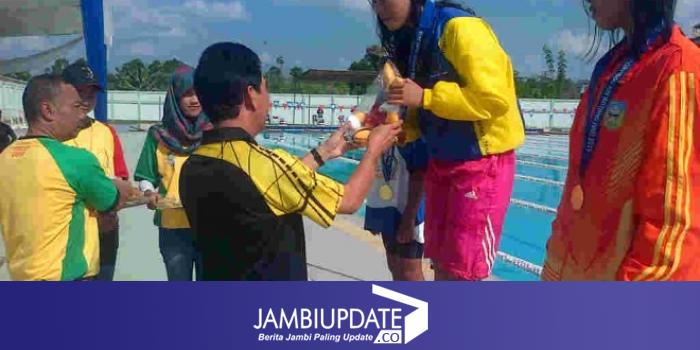 JAMBIUPDATE.COM, MUARABULIAN - Kabupaten Tanjung Jabung Barat (Tanjabbar) sore ini berhasil kembali berhasil merebut 2 medali emas dan 1 perak di Cabor renang Porprov Jambi ke XXI/2015. Dengan tambahan 2 medali ini, Tanjabbar terhitung telah mengantongi 23 medali emas dan berada di peringkat 4 klasemen perolehan medali sementara.