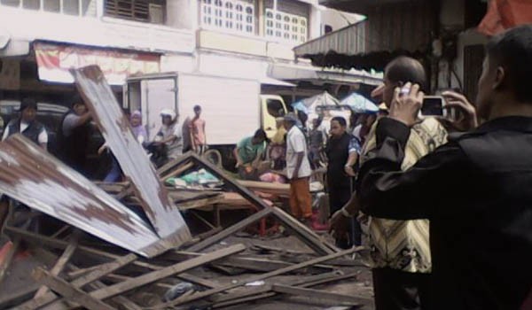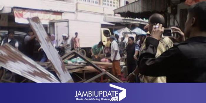 ŽJAMBIUPDATE.COM, JAMBI - Kamis (11/6) sekitar pukul 11.00 WIB, ratusan lapak Pekerja Kaki Lima (PKL) di Jalan Wahid Hasimn Pasar Angso Duo, Kota Jambi ditertibkan.