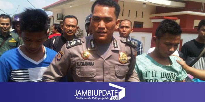 Setelah sekitar 30 menit kejadian, pihak Mapolsek Kota Sarolangun langsung mendatangi TKP untuk mengamankan kedua pelaku dan dua pemuda tersebut langsung digelandang ke Mapolsek Kota Sarolangun untuk mempertanggungjawabkan perbutannya. Kejadiannya senin siang (15/6), diarea Perumahan Gunung Kembang Sarolangun.