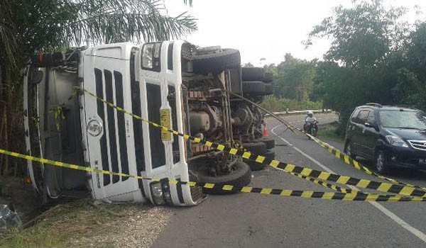Kecelakaan tunggal kali ini di alami oleh mobil tronton tanki yang berisi minyak mentah yang masih mengandung gas  berasal dari perusahaan pengeboran minyak di sarolangun.