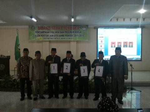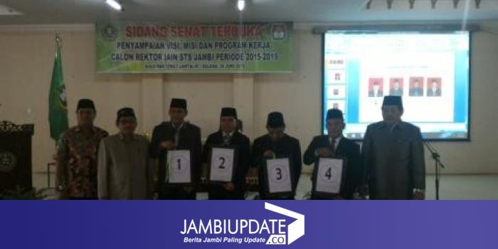 JAMBIUPDATE.COM, JAMBI-Senat IAIN STS Jambi siang ini (30/6) menggelar sidang Senat Terbuka Penyampaian Visi, Misi dan Peogram kerja calon rektor IAIN STS Jambi periode 2015-2019.