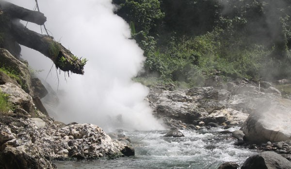 Mulai saat membacakan mantra, asap putih yang dikeluarkan air panas itu mulai mengepul dan membuat lokasi itu gelap bak tak tertembus sinar matahari. Suasana berubah menjadi gelap yang diikuti dengan semburan yang sangat tinggi.
