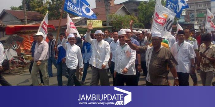JAMBIUPDATE.COM, KUALATUNGKAL - Sepanjang jalan, Calon bupati dan wakil bupati Tanjabbar Anwar sadat dan suhatmeri mengumbar senyum manis kepada seluruh warga masyarakat yang dilaluinya menuju kantor kpu.