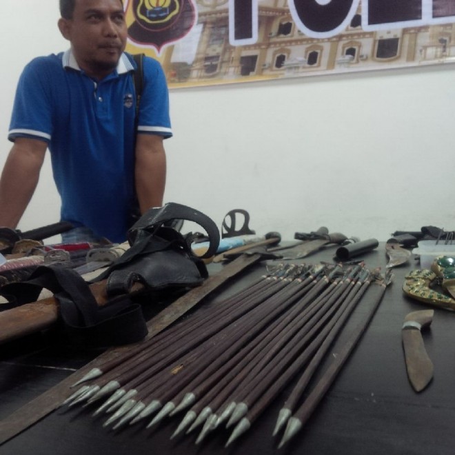 JAMBIUPDATE.COM, JAMBI - Selain sarang narkoba, Pulau Pandan, Kecamatan Telanaipura, Kota Jambi, juga diduga kuat sebagai sarang kriminalitas. Buktinya, tidak hanya puluhan senjata tajam yang diamankan, tetapi juga anak panah dan sumpit.