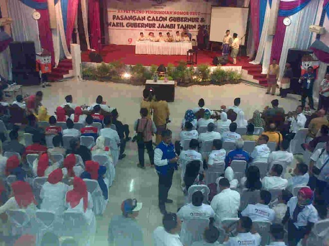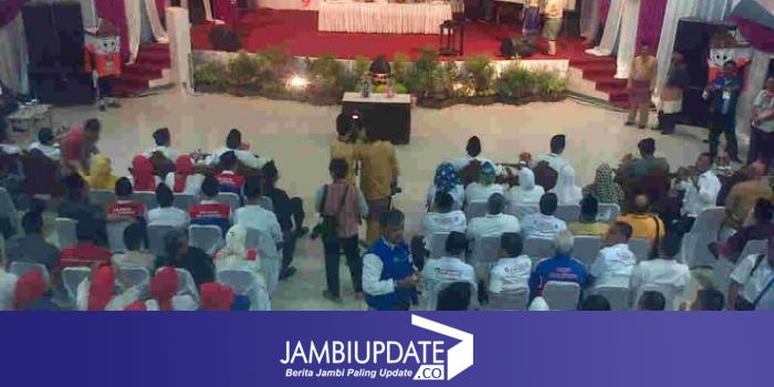 JAMBIUPDATE.COM, JAMBI- Meski pengambilan nomor urut Cagub dan Cawagub belum dilakukan, namun suasana di luar Aula RRI, Selasa (25/8) sore ini berlangsung meriah. Sebabnya, tim relawan kandidat HBA-EP dan ZZ-FU parang yel-yel untuk memberikan dukungan kepada kandidat masing-masing.