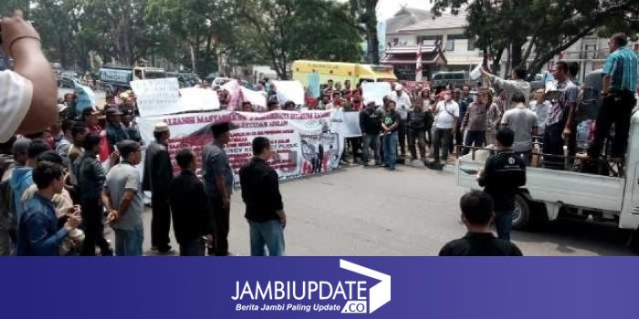 JAMBIUPDATE.COM, JAMBI-Ribuan massa penuhi kantor Kejaksaan tinggi Jambi, massa datang dengan kendaraan bak terbuka.