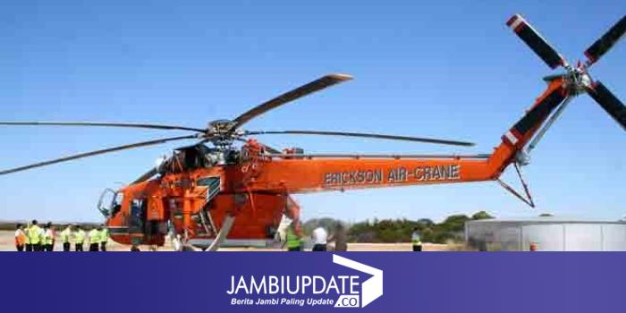JAMBIUPDATE.COM, JAMBI - Helikopter water bombing milik Badan Nasional Penanggulangan Bencana (BNPB) mulai memadamkan api yang melahap hutan dan lahan di kawasan Taman Nasional Berbak, Kabupaten Tanjung Jabung Timur. Satu Helikopter didatangkan dari Australia.